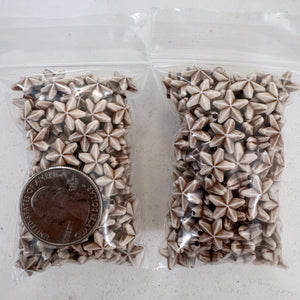 white brown, carved design star, vintage look acrylic, 11x11x4mm star, sold per approximately 30 gram bag