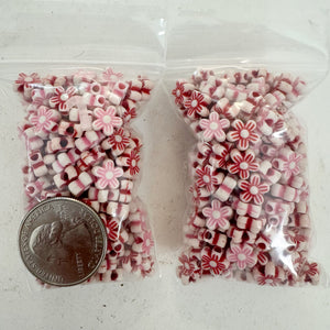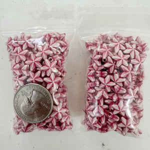 white dark red and pink mix, carved design flower, vintage look acrylic, 8x8x4mm flower, sold per approximately 26 gram bag