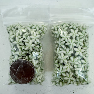 white dark celery green, carved design star, vintage look acrylic, 11x11x4mm star, sold per approximately 30 gram bag