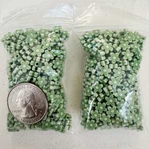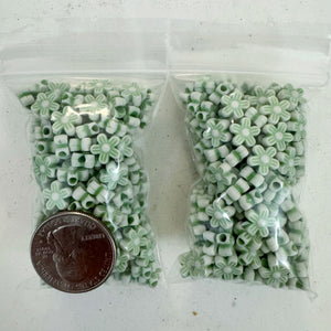 white dark celery green, carved design flower, vintage look acrylic, 7x7x4mm flower, sold per approximately 28 gram bag