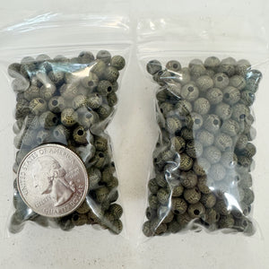 matte dark pale green swirl, vintage look acrylic, 6mm carved design buddha motif round, sold per approximately 27 gram bag
