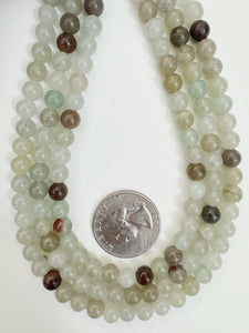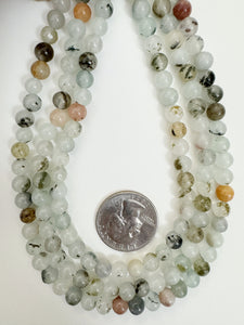 pale mint green black orange color enhanced quartz, 6mm round, 15" strand, sold per strand