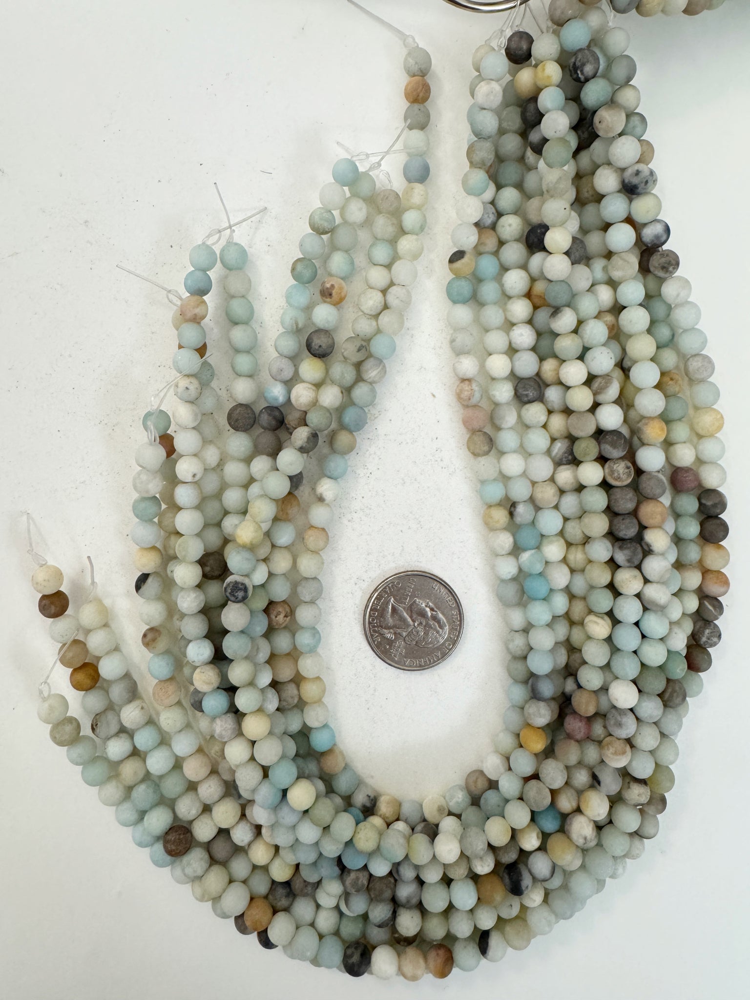 amazonite, matte finish, 6mm round, 15" strand, sold per strand