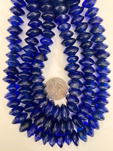 Cobalt blue, single color, vintage look glass, 15x8mm pointed saucer rondelle, 15" strand, sold per strand