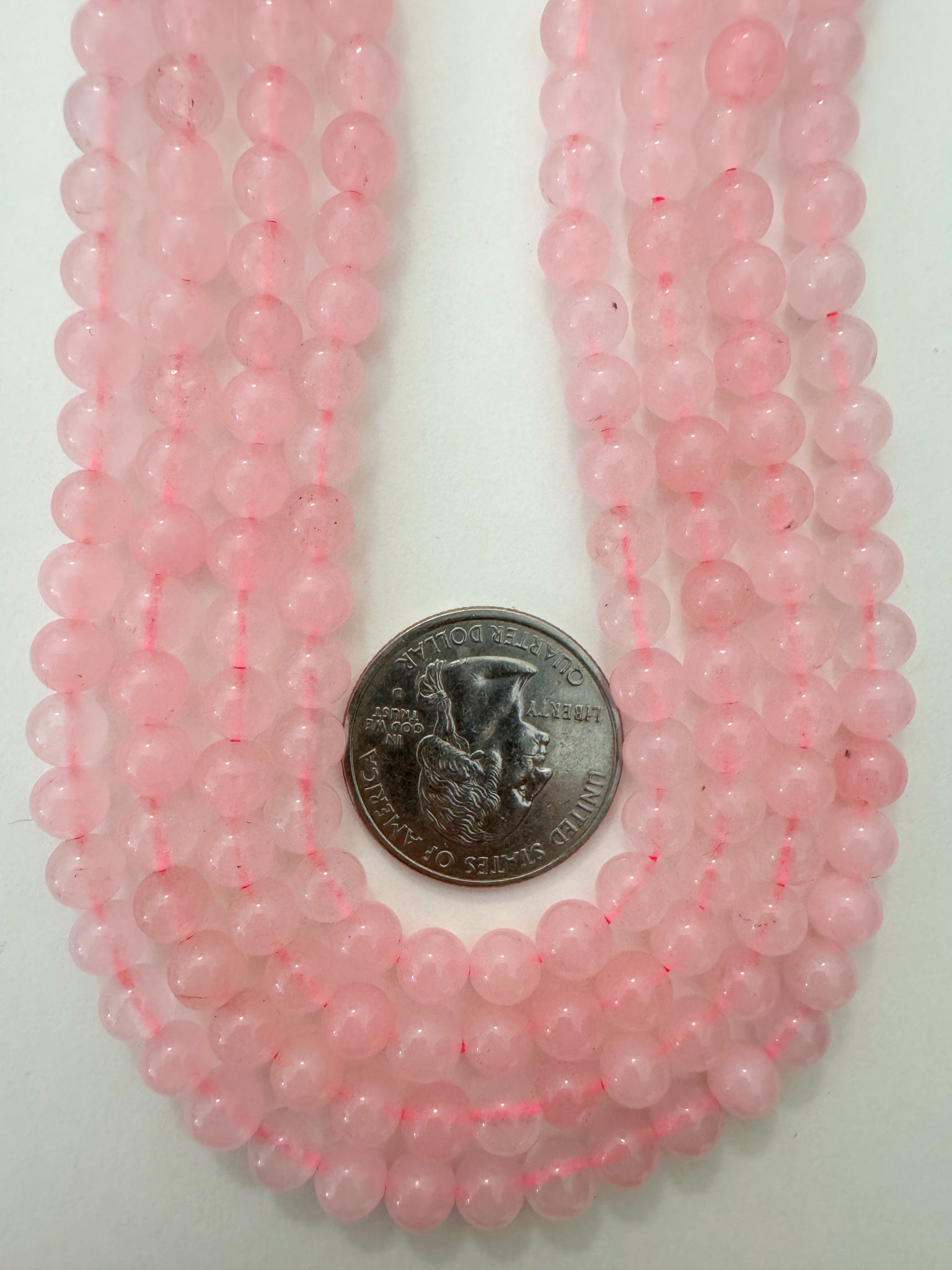 color enhanced quartz: bright pink, 6mm round, 15" strand, sold per strand