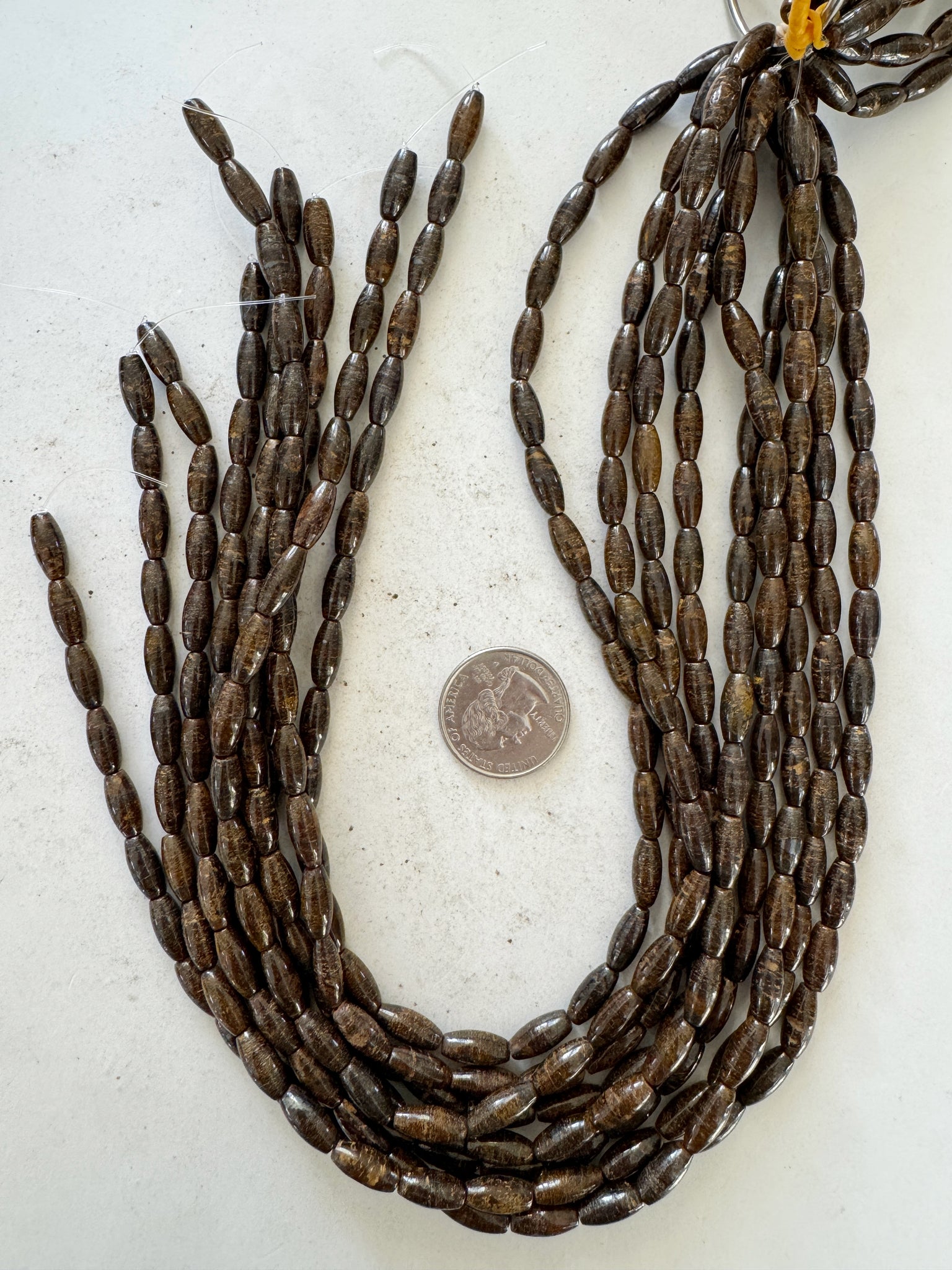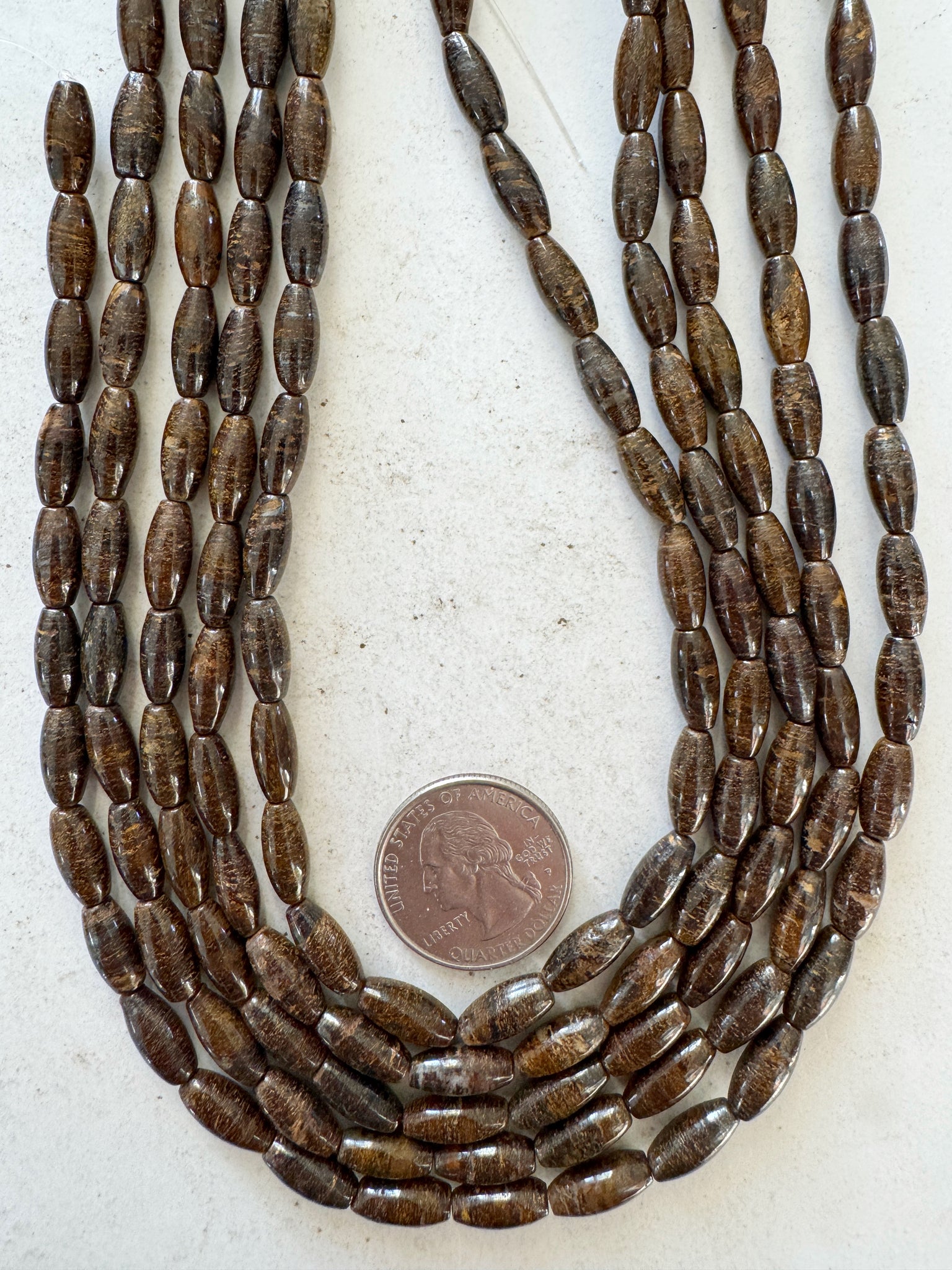 bronzite, 12x5mm bowed rice tube, 15" strand, sold per strand