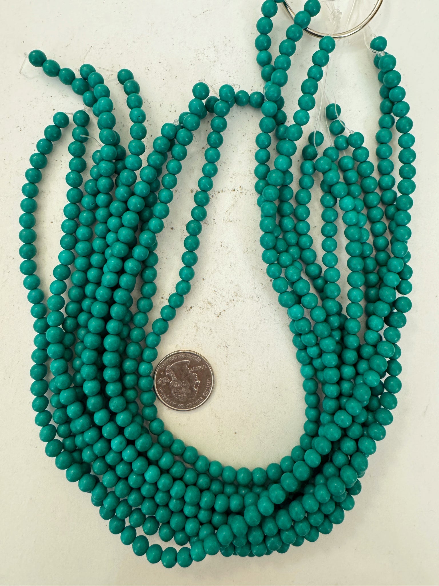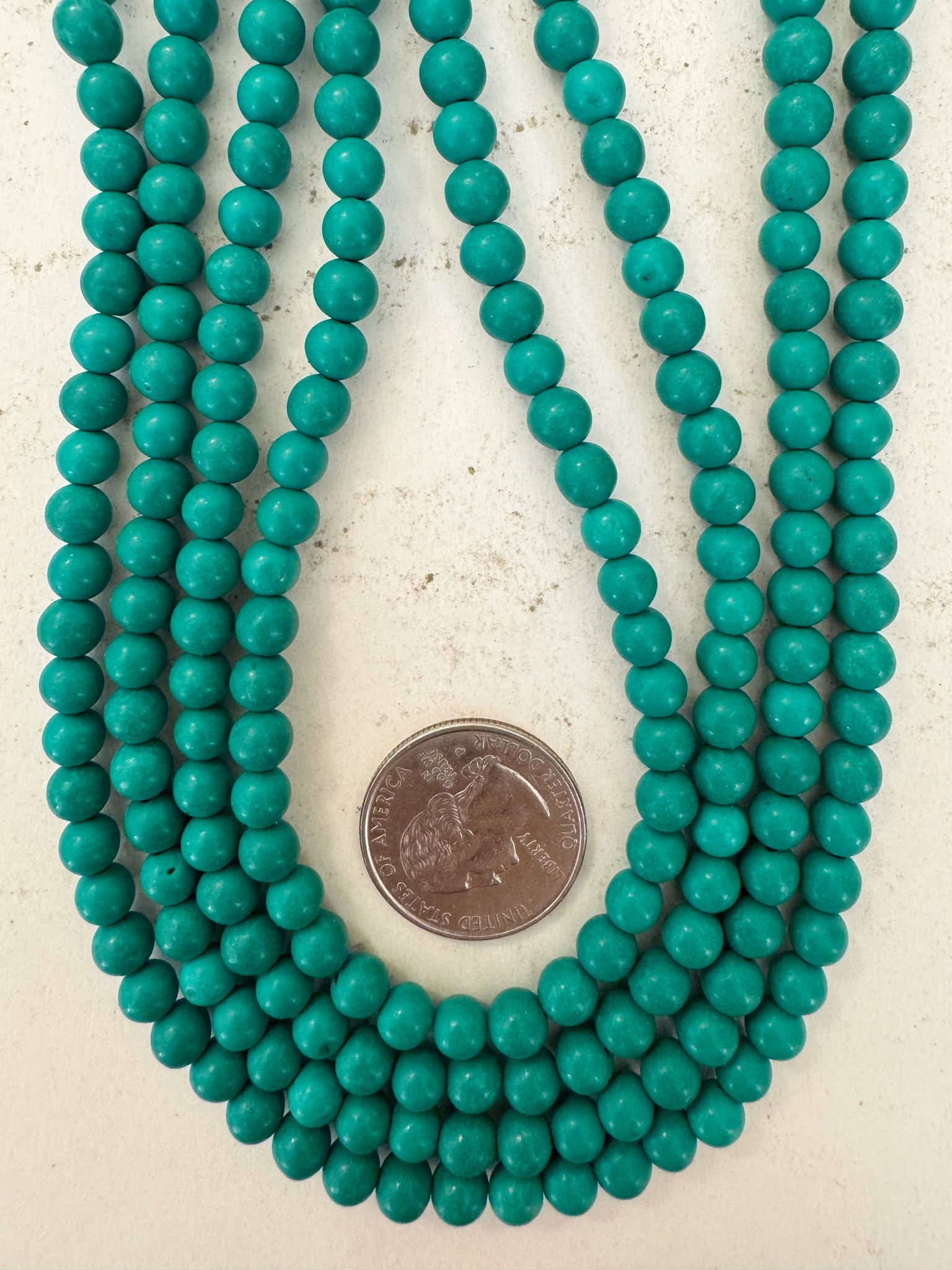 color enhanced magnesite: dark turquoise blue, 6mm round, 15" strand, sold per strand