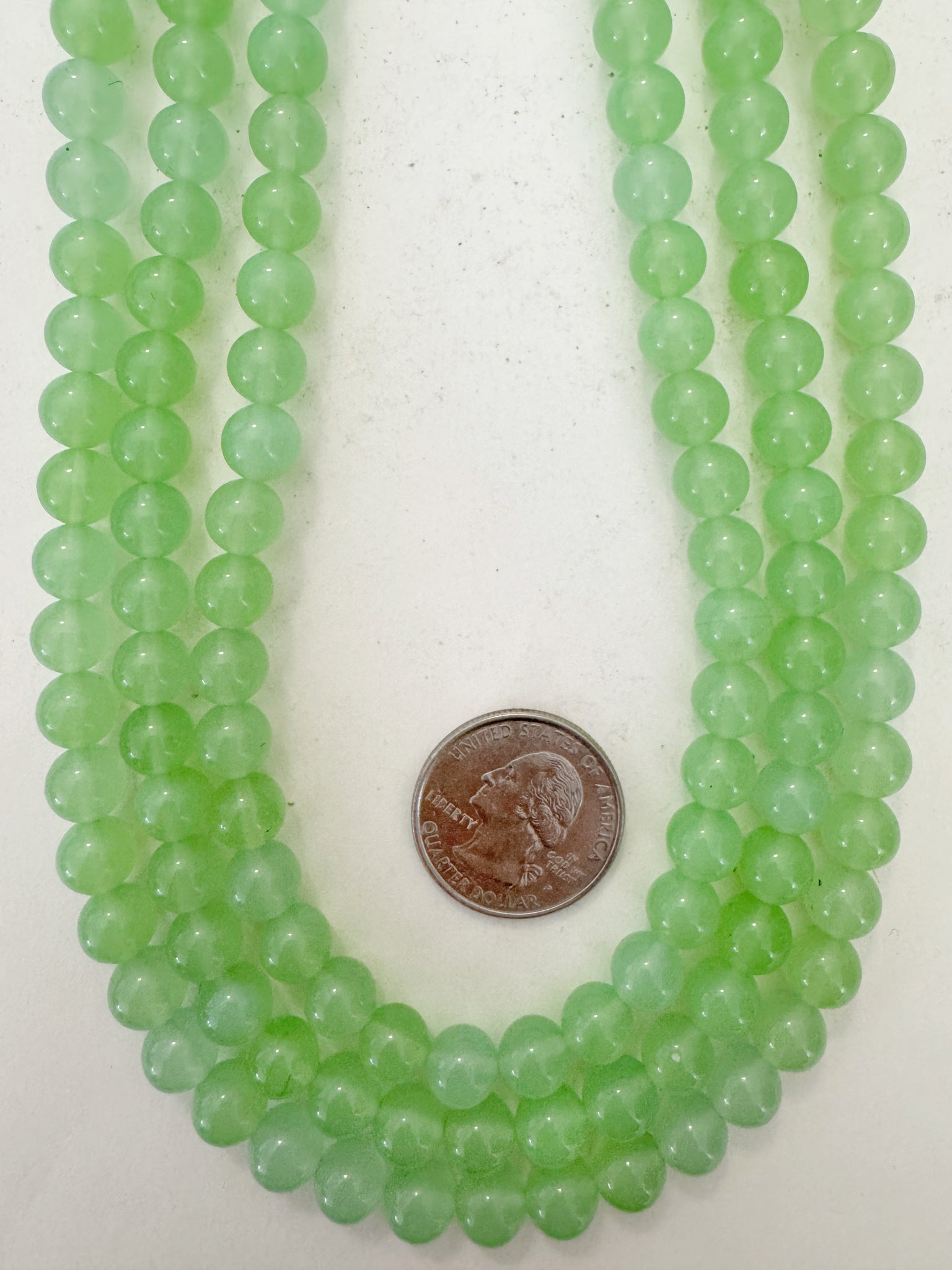 color enhanced quartz: bright pale green, 8mm round, 15" strand, sold per strand
