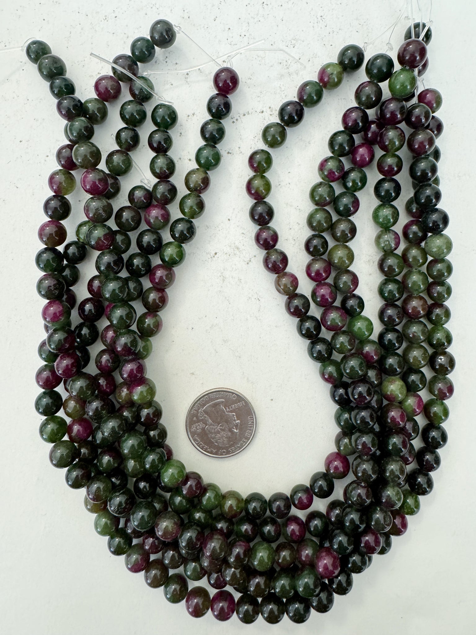 color enhanced quartz: dark green magenta, 8mm round, 15" strand, sold per strand