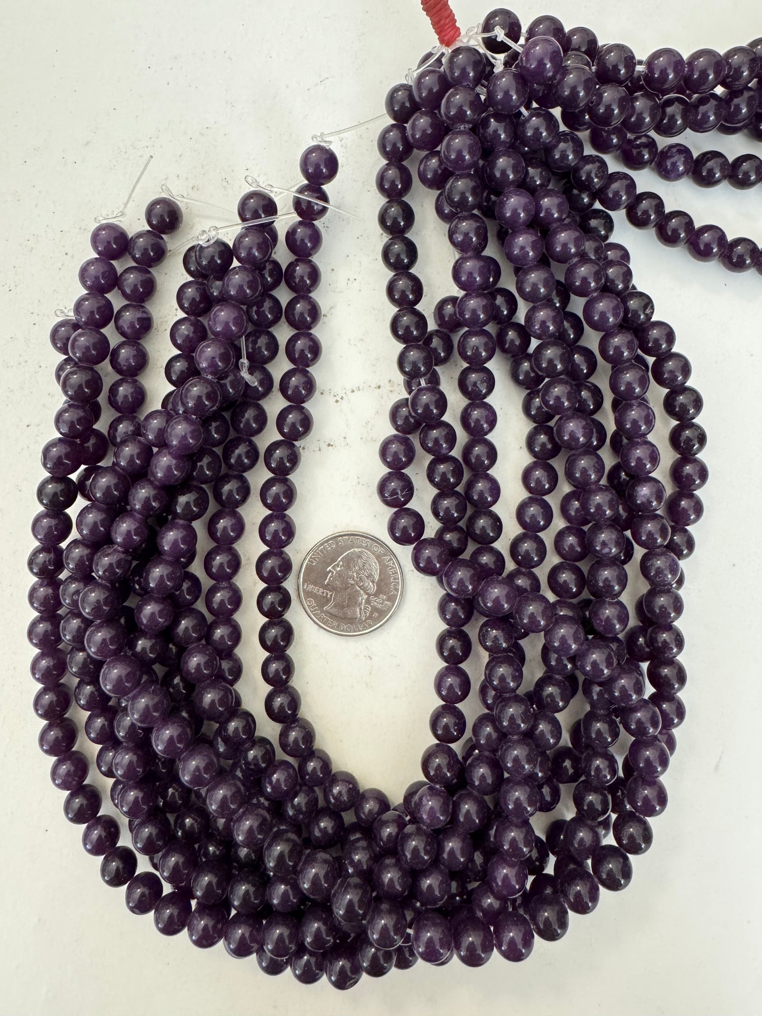 color enhanced quartz: dark royal purple, 8mm round, 15" strand, sold per strand