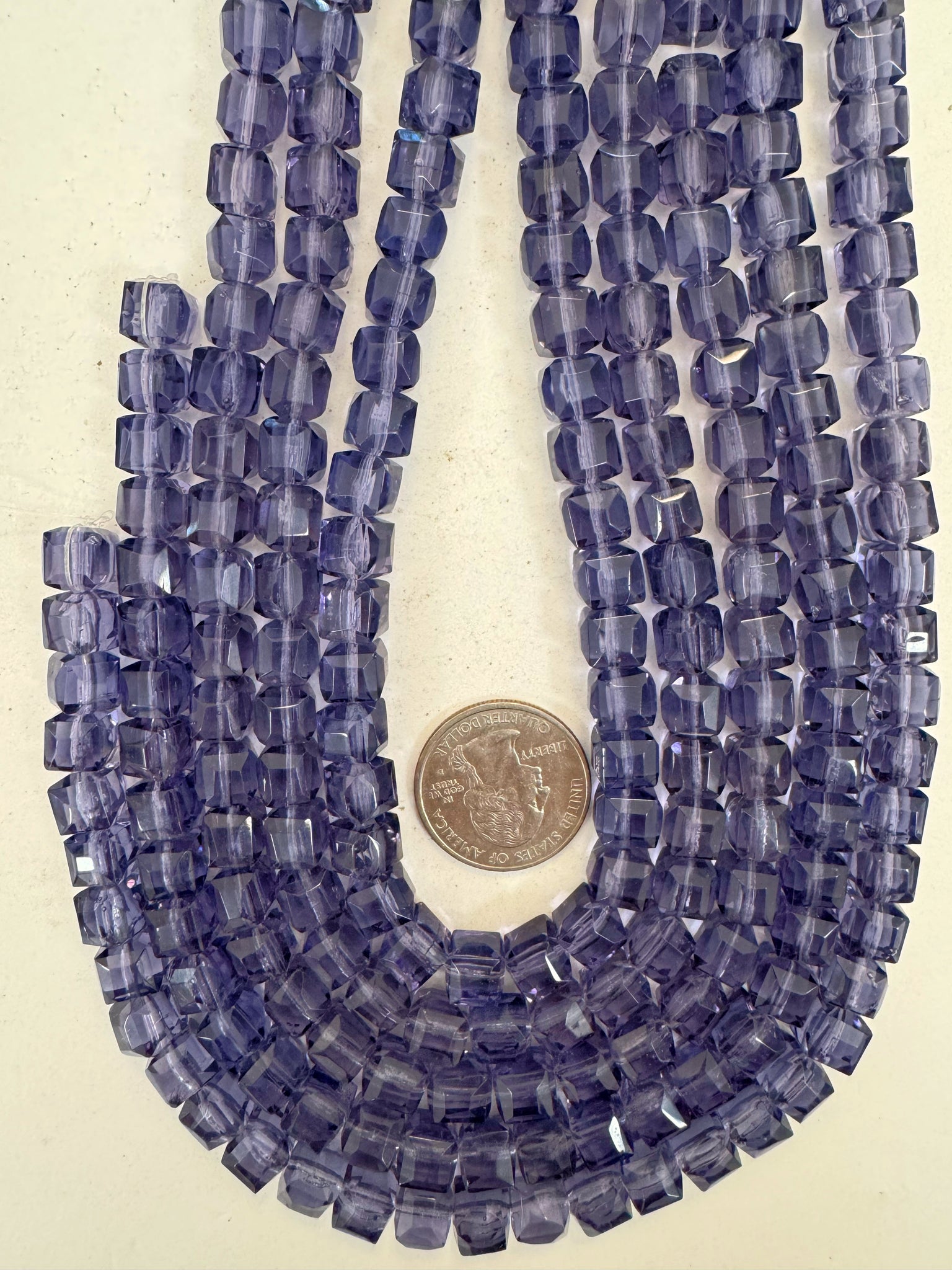 dark pale purple, single color, vintage look glass, 8mm faceted cube, 14" strand, sold per strand