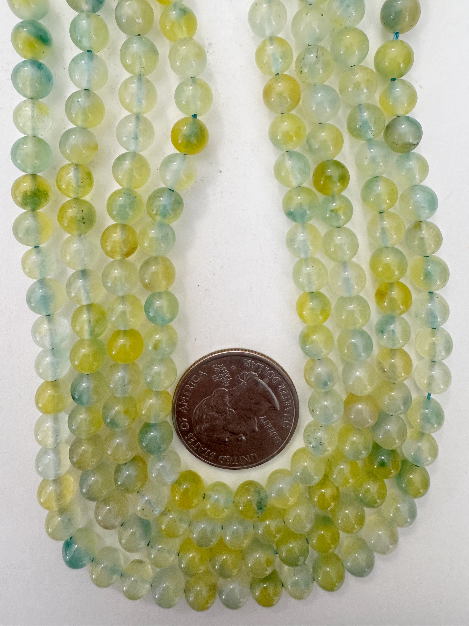 color enhanced quartz: dark yellow blue, 6mm round, 15" strand, sold per strand