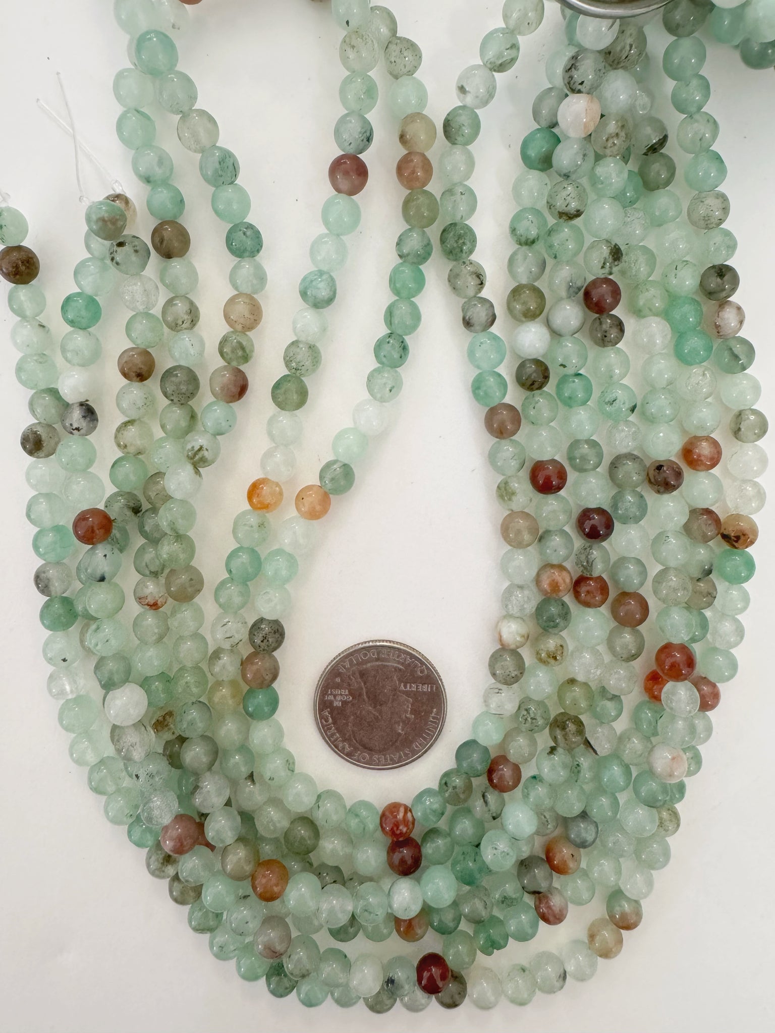 mint green orange brown color enhanced quartz, 6mm round, 15" strand, sold per strand