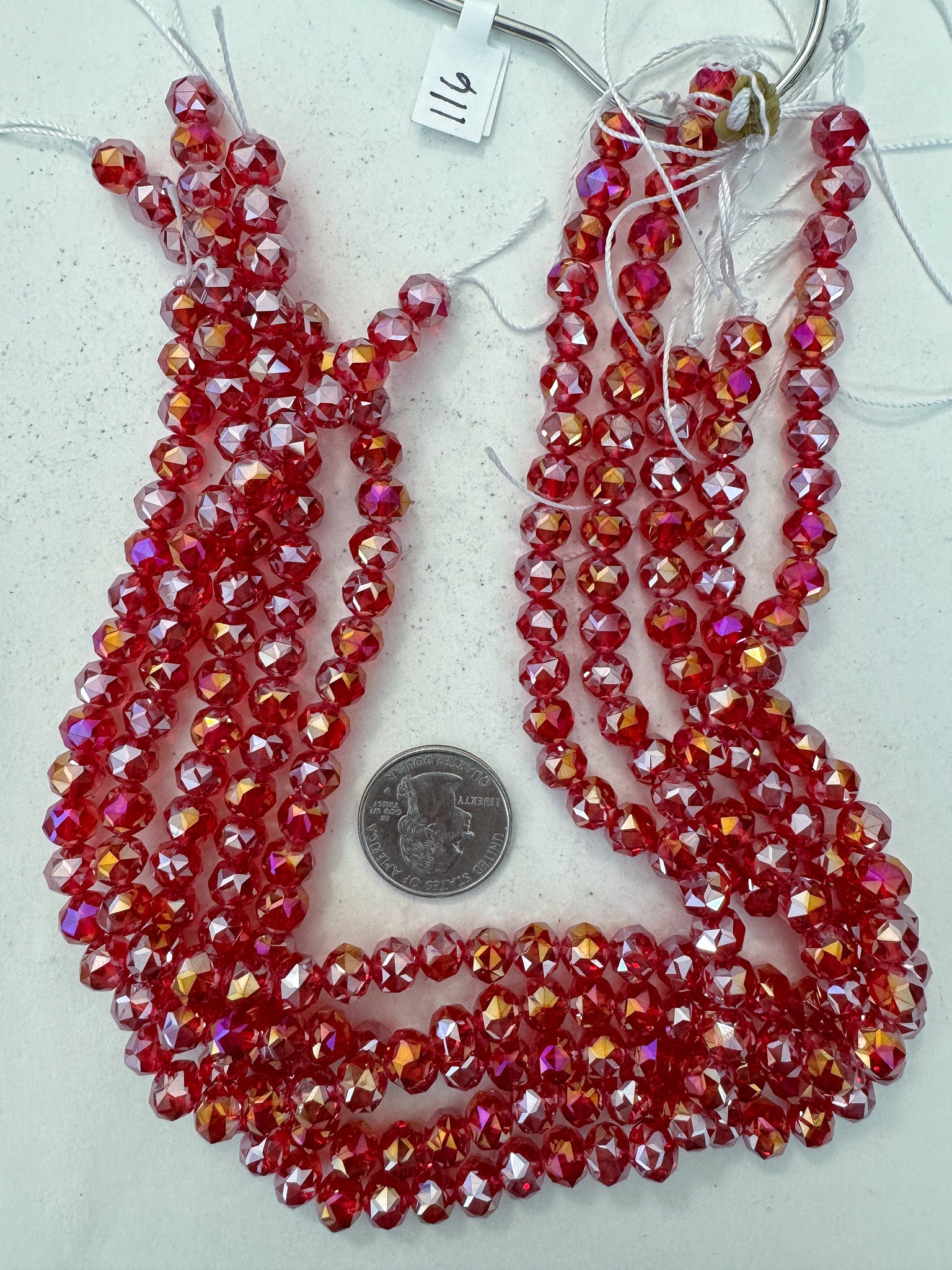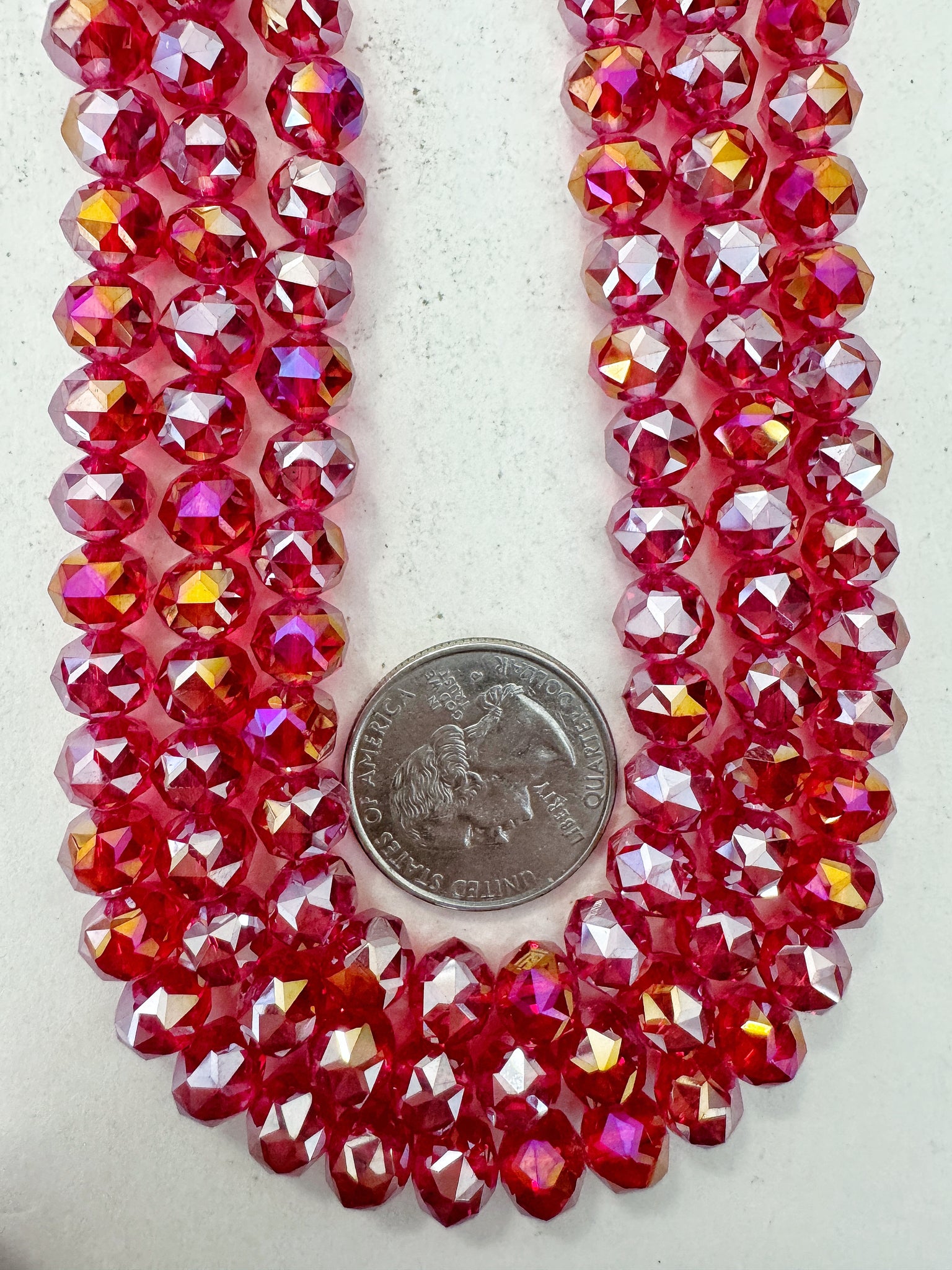 red, silver AB coated, glass, 8x7mm fancy cut faceted rondelle, 15" strand, sold per strand