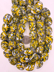black white pale yellow spotted, vintage look glass, 22x20mm barrel, 15" strand, sold per strand