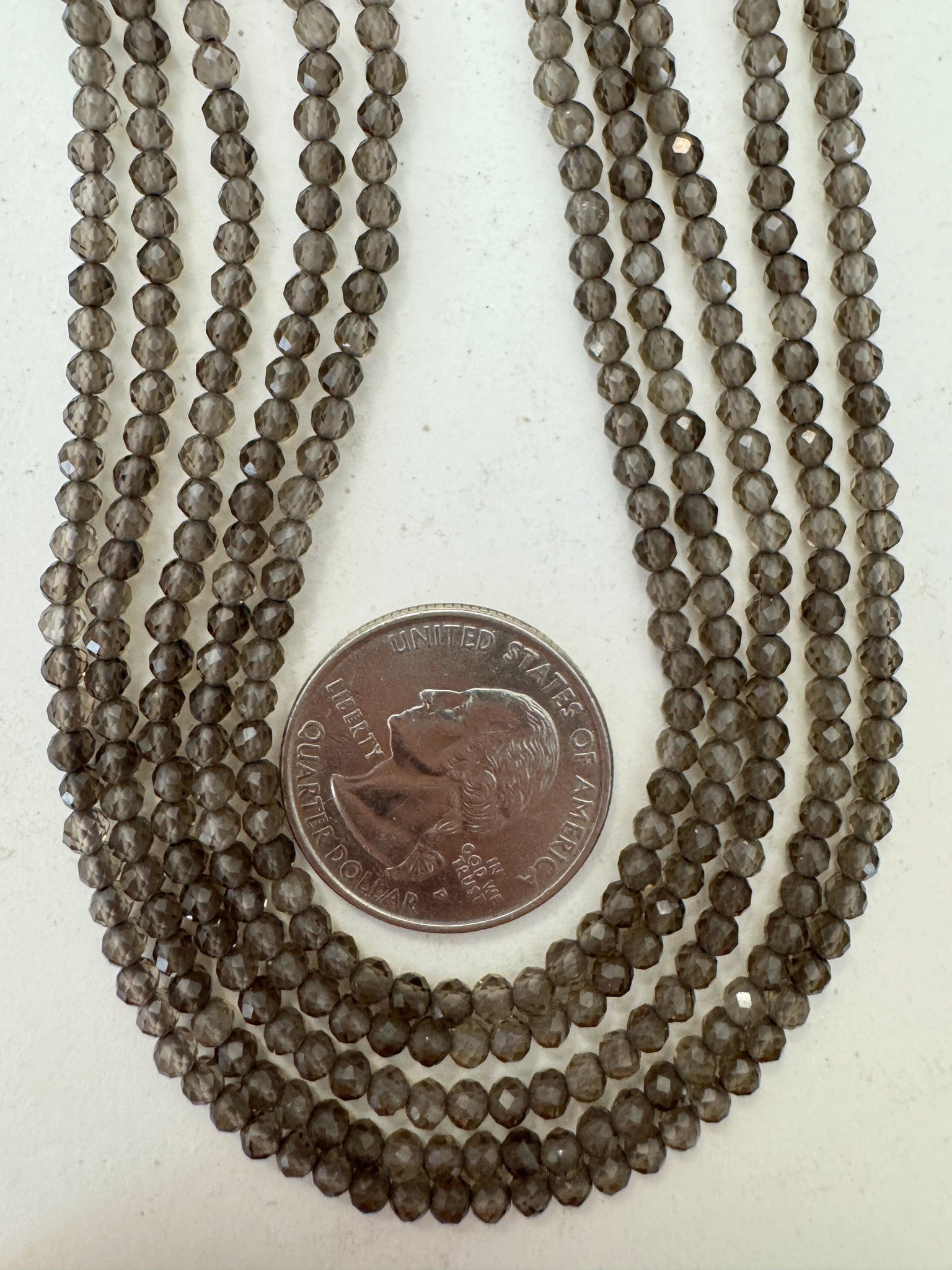 smokey quartz, 3mm faceted round, 15" strand, sold per strand