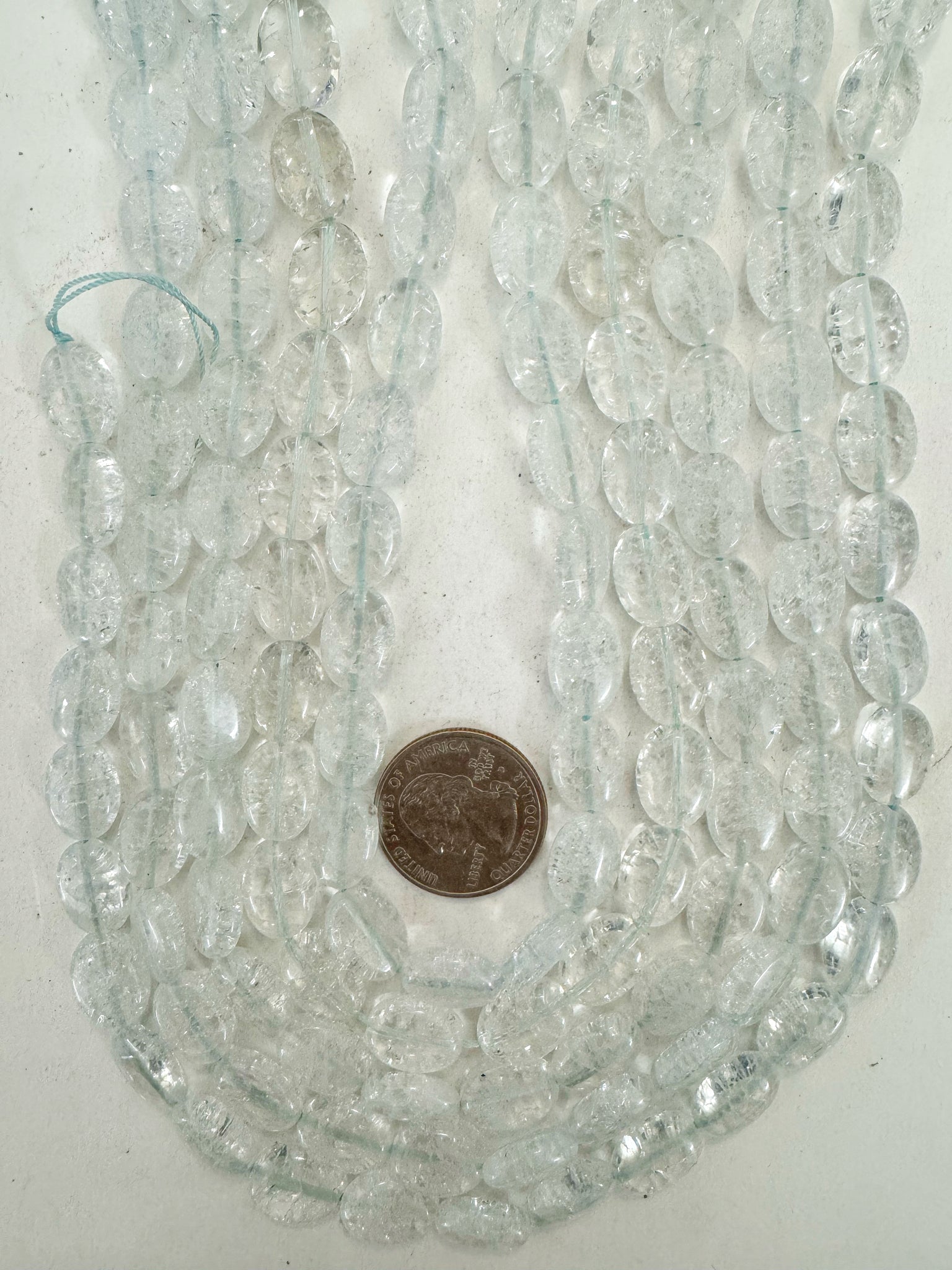 very light aqua blue color enhanced crackle look quartz, 14x10x6mm oval, 15" strand, sold per strand