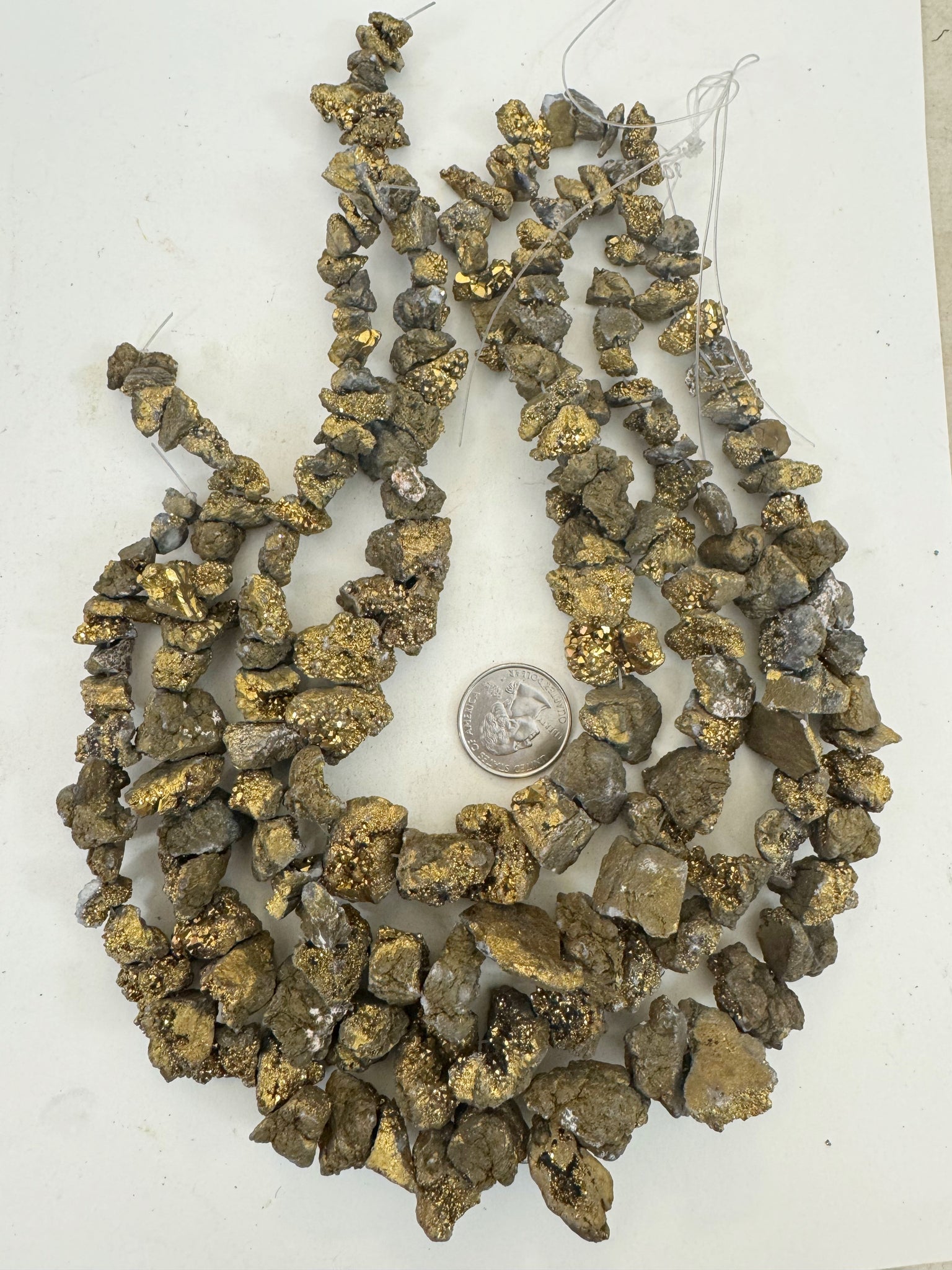 antique gold coated druzy quartz, 7-25mm rough nugget, 15" strand, sold per strand, may have edge or surface wear