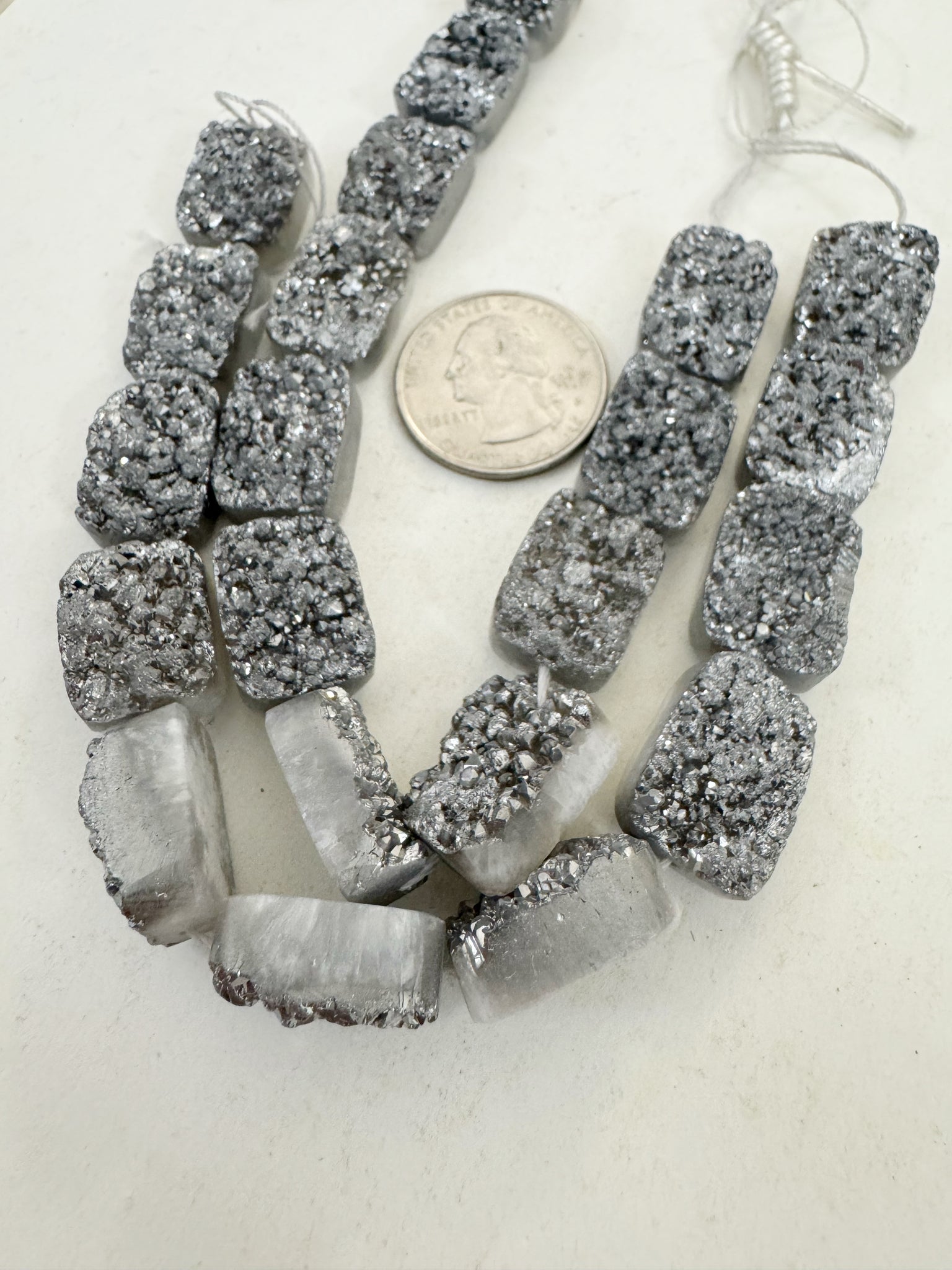 antique silver coated druzy quartz, 19x13x7mm rectangle, 11 piece strand, sold per strand