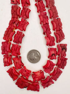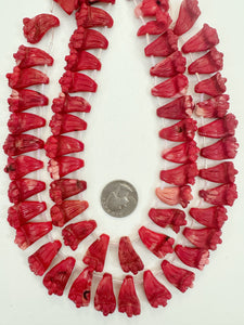 color enhanced ox blood coral, 24x13x7mm hand carved flower blossoms motif pendant, 15" strand, sold per strand