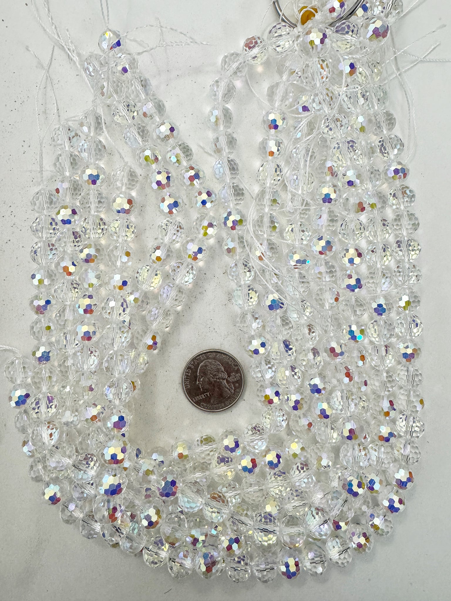 clear AB coating glass, 10mm fancy cut faceted round, 15" strand, sold per strand