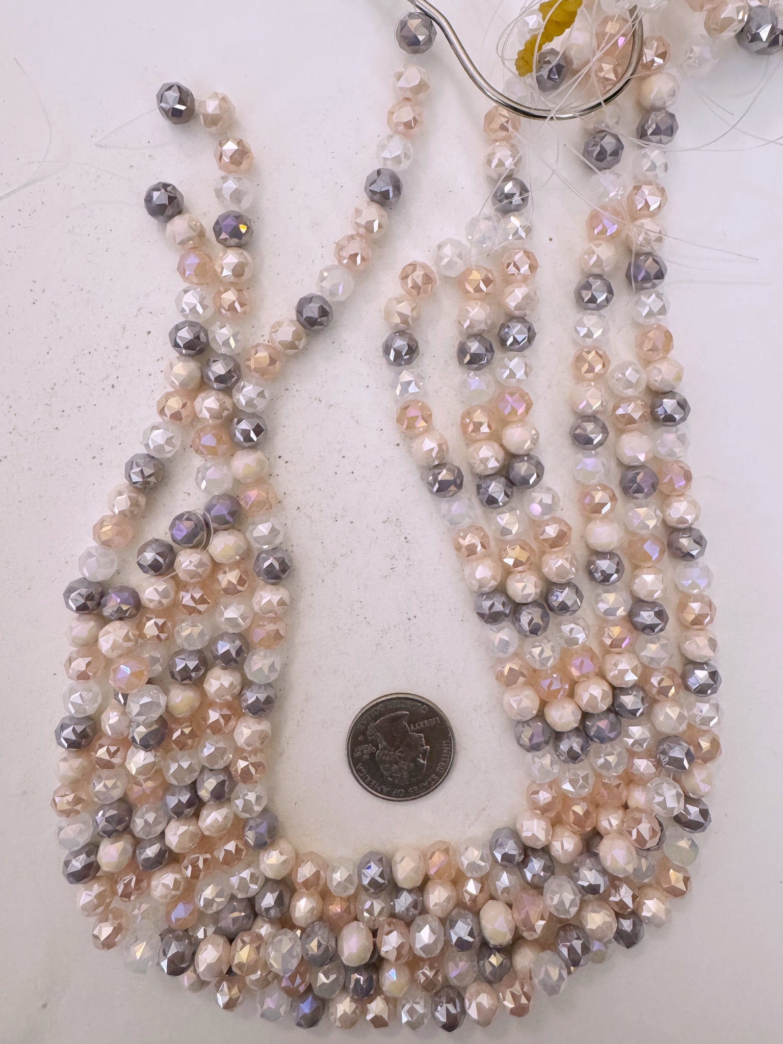 pastel purple pink mix, white pearly ab coated, glass, 8x7mm fancy cut faceted rondelle, 15" strand, sold per strand