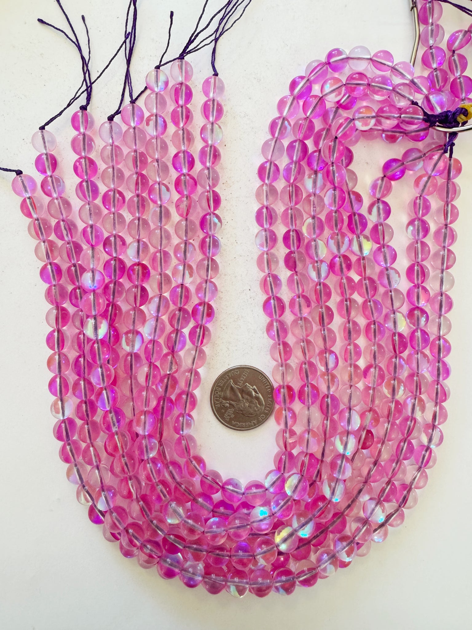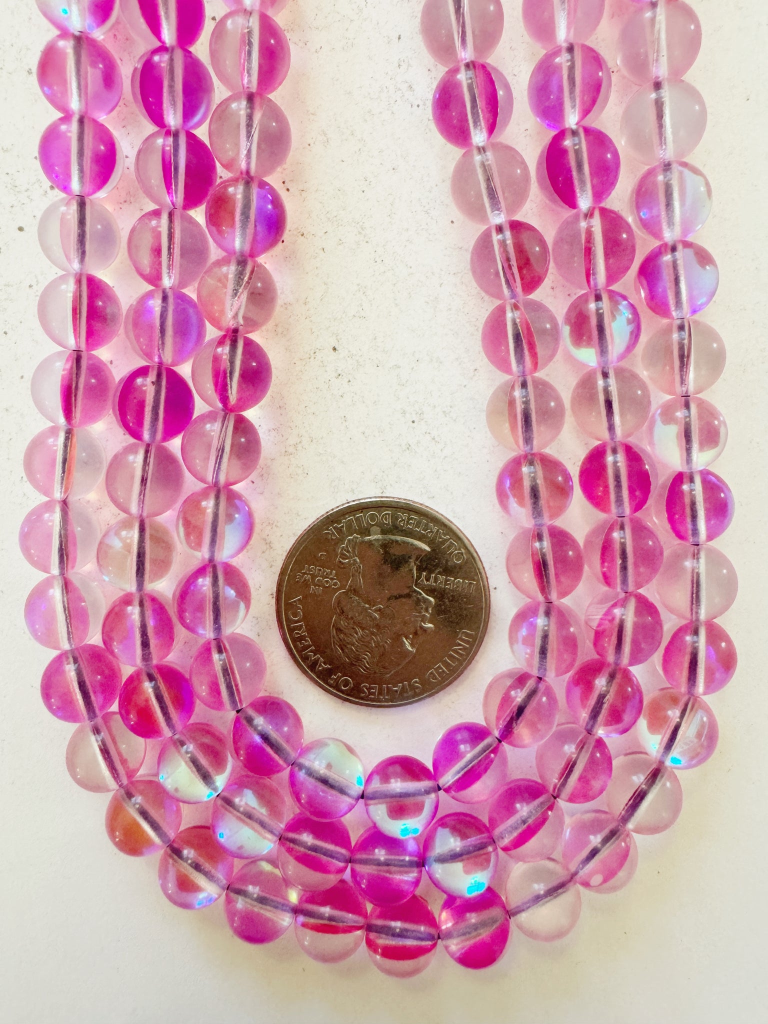 clear dark hot pink AB, mermaid glass (mystic aura quartz), 8mm round, 15" strand, sold per strand