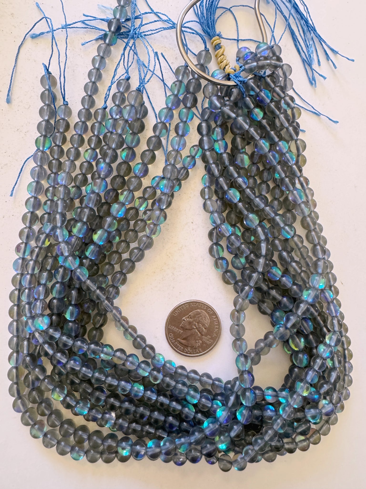 gray blue AB, mermaid glass (mystic aura quartz), 6mm round, 15" strand, sold per strand