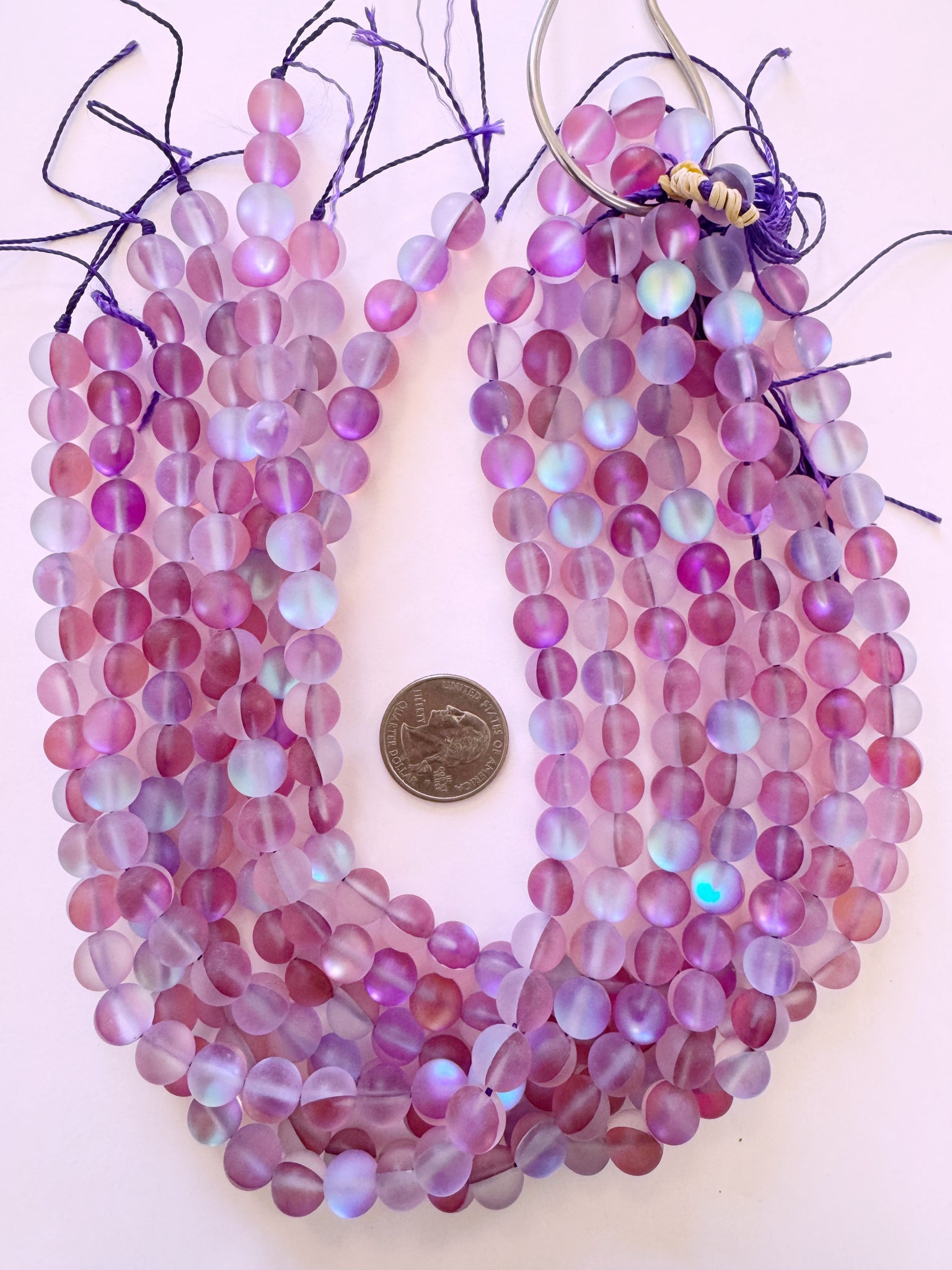 matte clear dark red purple AB, mermaid glass (mystic aura quartz), 10mm round, 15" strand, sold per strand