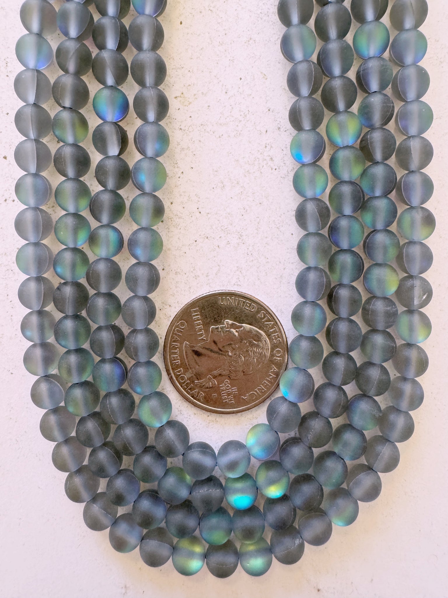 matte gray blue AB, mermaid glass (mystic aura quartz), 6mm round, 15" strand, sold per strand (batch 1)