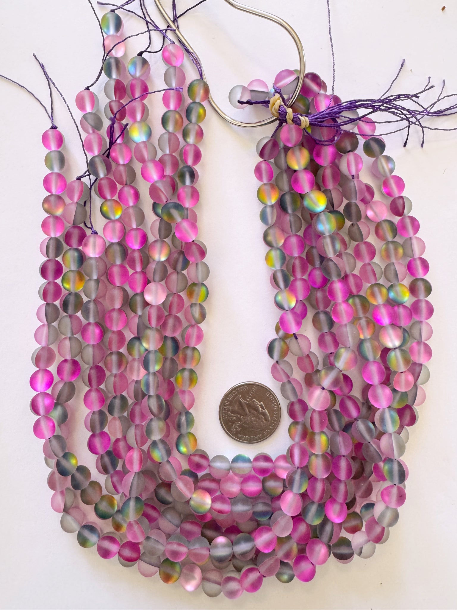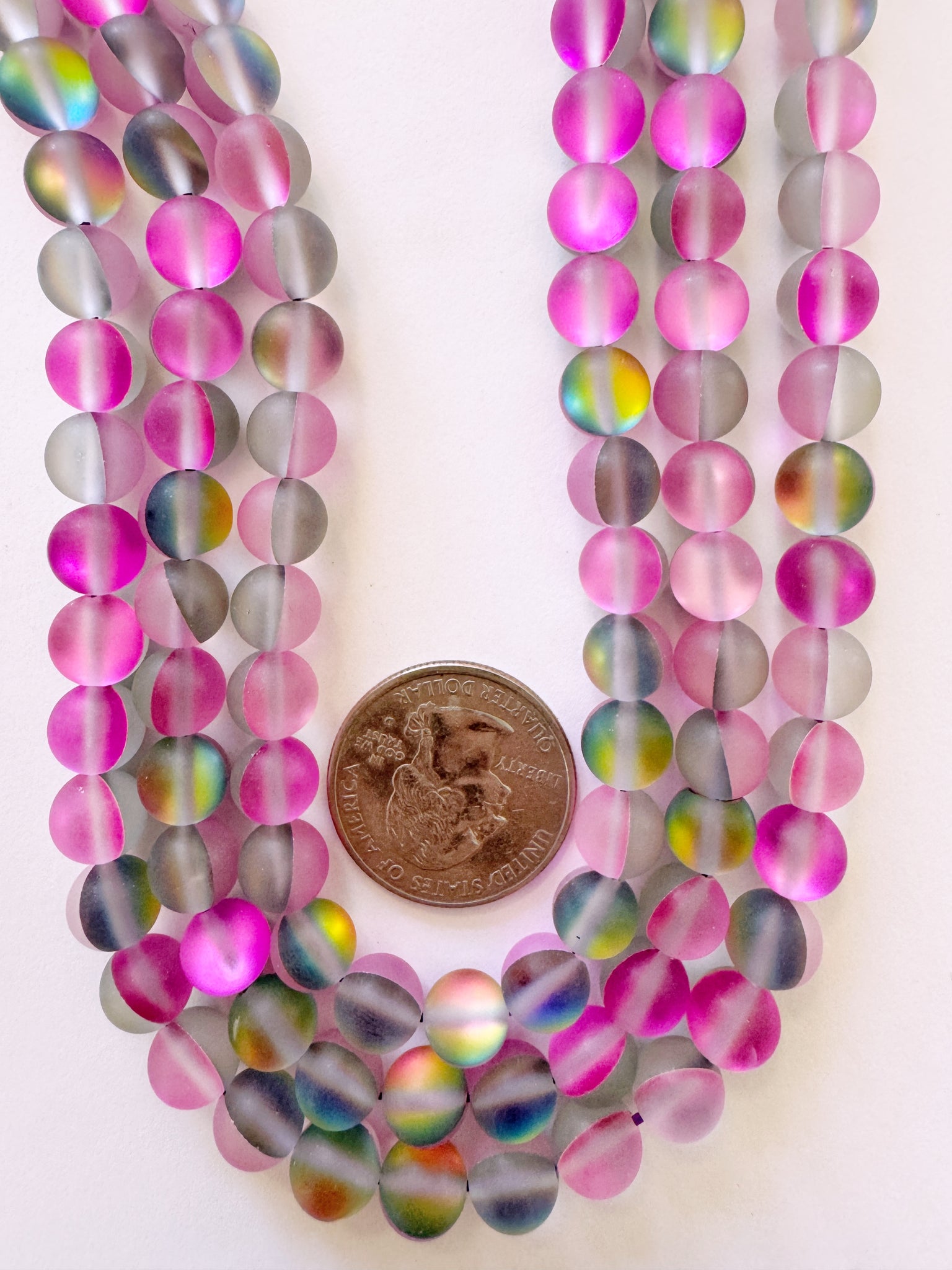 matte gray clear pink magenta AB, mermaid glass (mystic aura quartz), 8mm round, 15" strand, sold per strand