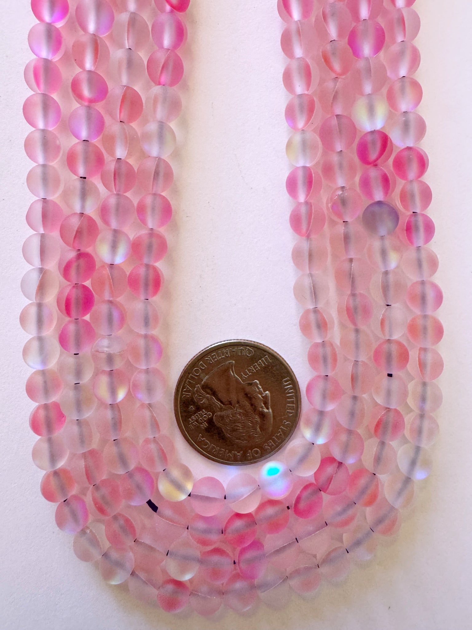 matte light margenta clear AB, mermaid glass (mystic aura quartz), 6mm round, 15" strand, sold per strand