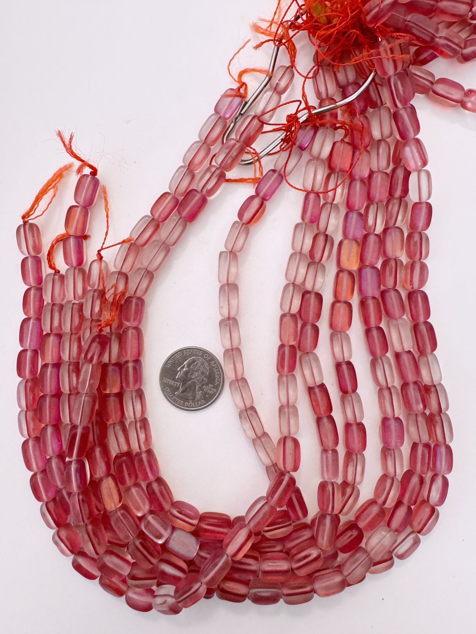 matte red clear AB, mermaid glass (mystic aura quartz), 11x7mm rectangle nugget, 15" strand, sold per strand
