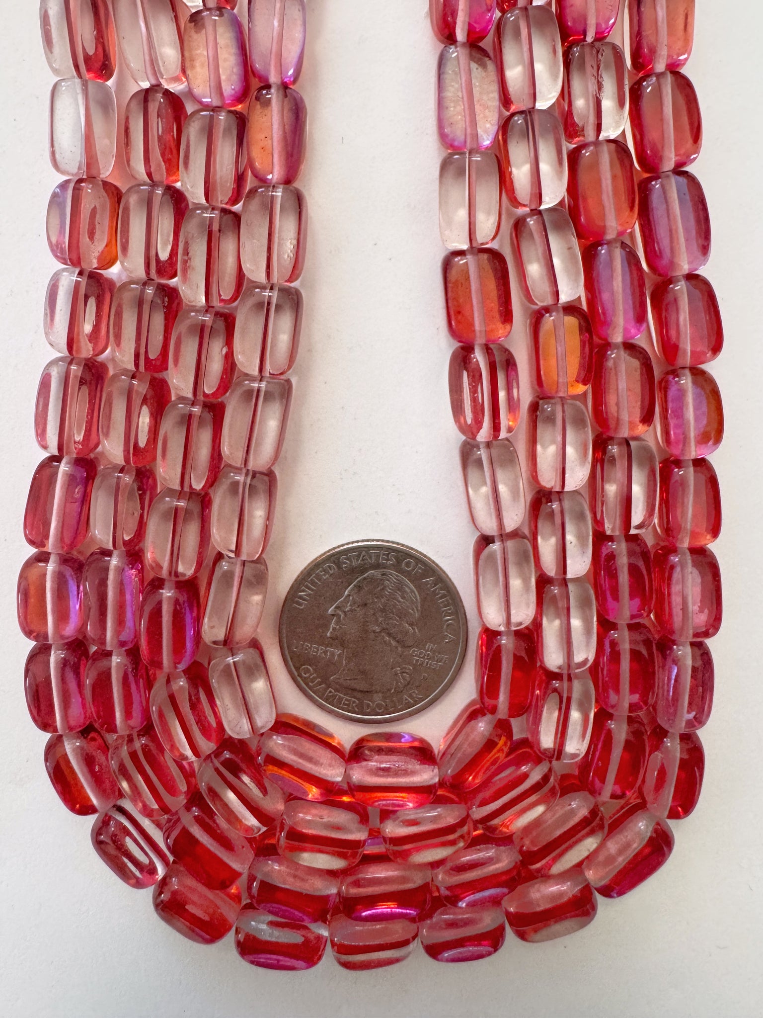 red clear AB, mermaid glass (mystic aura quartz), 11x7mm rectangle nugget, 15" strand, sold per strand