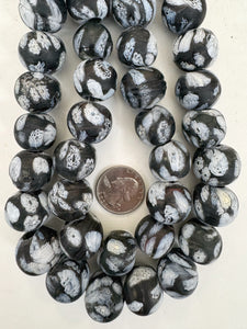 matte white black millefiori motif, vintage look glass, 19-20mm round mix, 15" strand, sold per strand