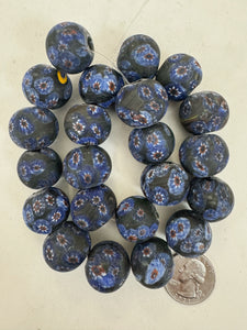 matte blue red white black millefiori motif, vintage look glass, 20mm round mix, 15" strand, sold per strand