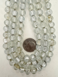 clear yellowed metallic inside lined motif, vintage look glass, 9mm melon cut round, 15" strand, sold per strand