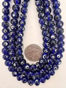 cobalt blue black white evil eye, vintage look glass, 9x8mm rondelle, 15" strand, sold per strand