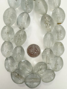 clear, single color, vintage look glass, 28x21mm bowed tube, 15" strand, sold per strand