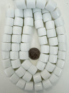 white, single color, vintage look glass, 16x14mm barrel, 15" strand, sold per strand