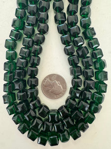 dark green, single color, vintage look glass, 10mm rounded cube, 13" strand, sold per strand