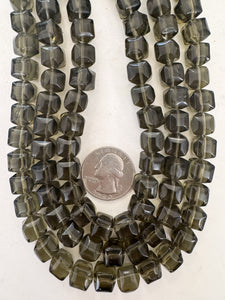 dark pale gray green, single color, vintage look glass, 10mm corner cut cube, 12" strand, sold per strand