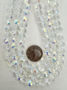 AB finish clear, single color, vintage look glass, 10x7mm faceted rondelle, 14" strand, sold per strand