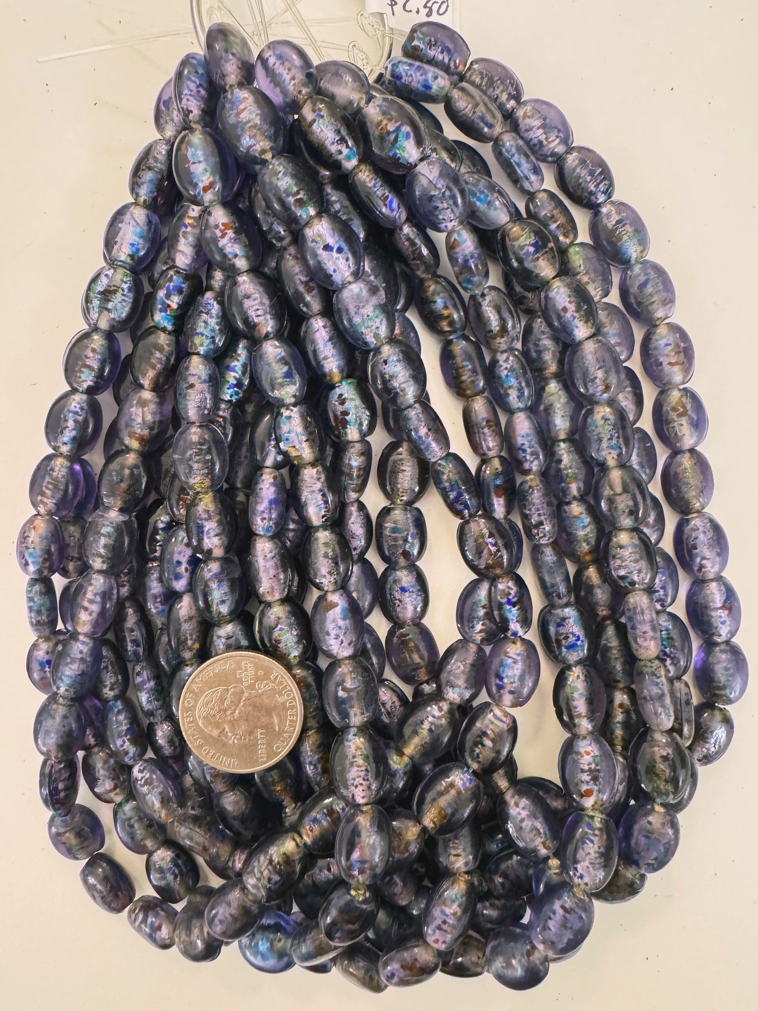 dark pale blue purple blue red swirl motif, vintage look glass, 13x11x6mm oval mix, 15" strand, sold per strand