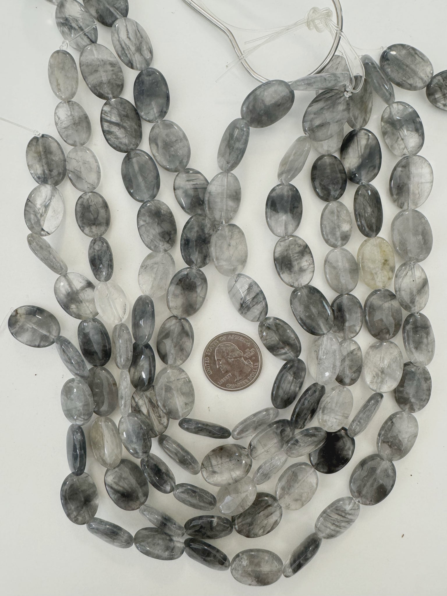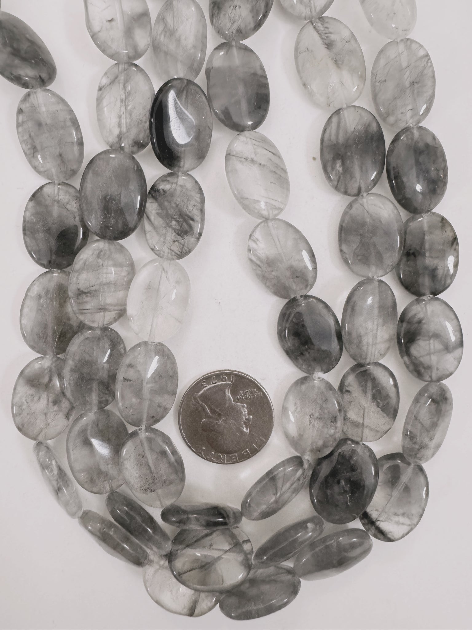 gray cloudy quartz, 21x15x6mm oval, 15" strand, sold per strand