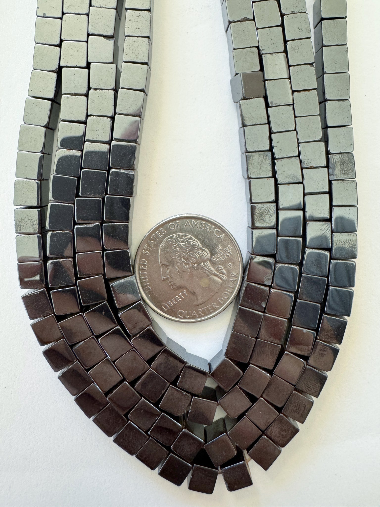 hematite, 6mm cube, 15" strand, sold per strand