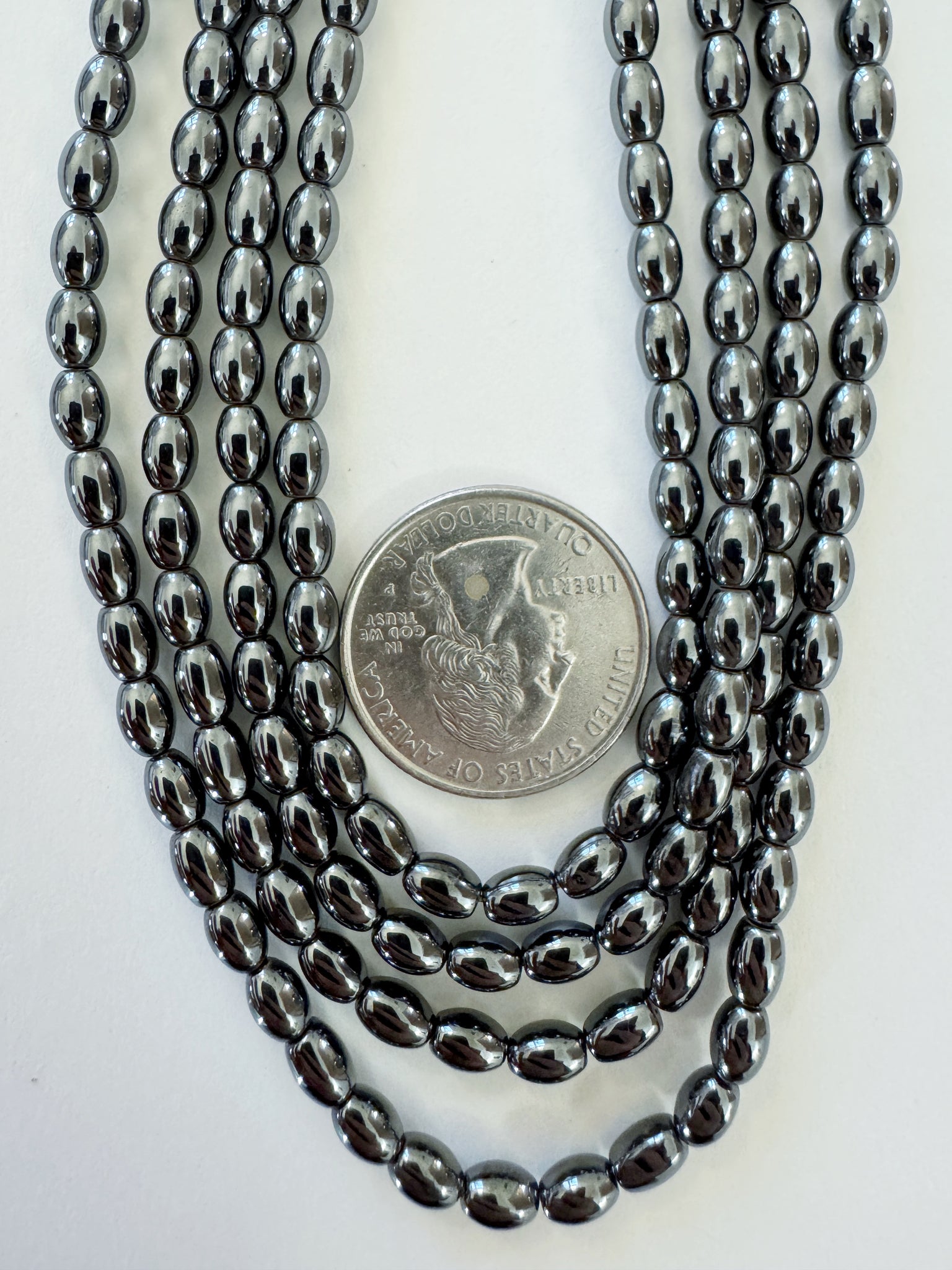 hematite, 6x4mm bowed tube, 15" strand, sold per strand