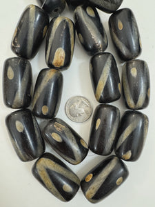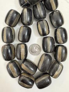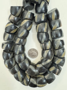 black off white golden horn, stripe motif, 32x24mm barrel tube, 15" strand, sold per strand