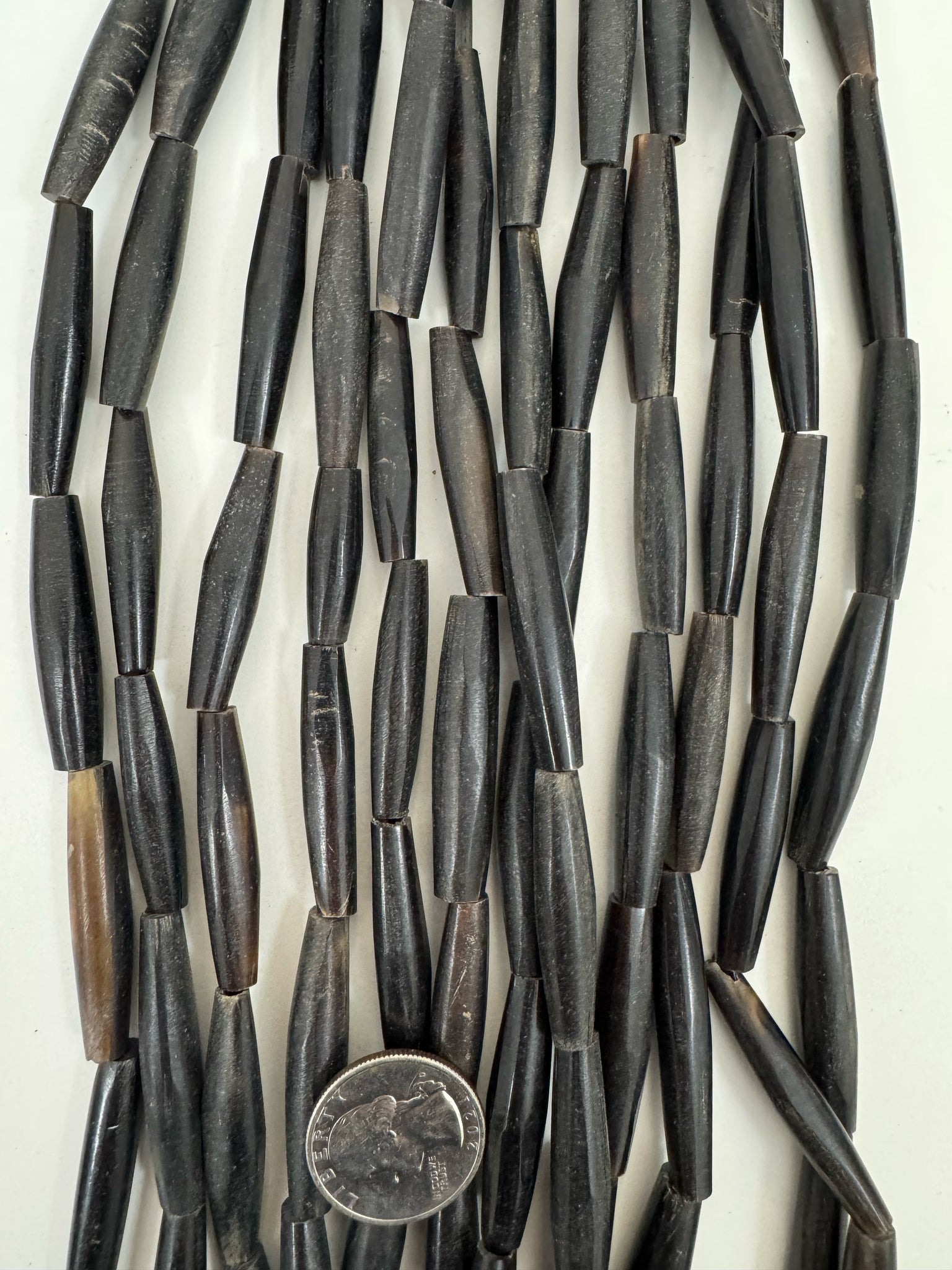 black horn, 25-40mm random assortment tube, 15" strand, sold per strand