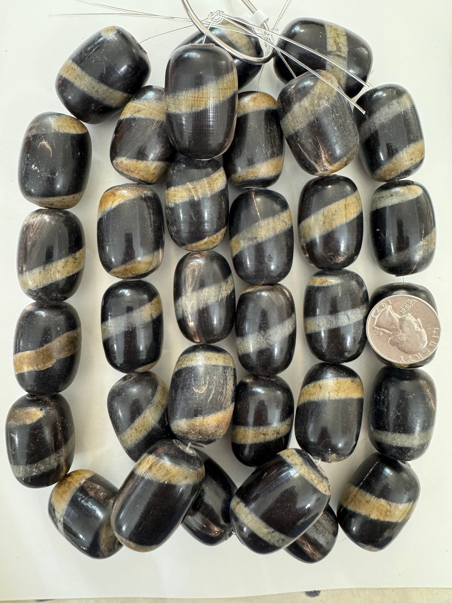 black off white golden horn, spiral motif, 32x24mm barrel tube, 15" strand, sold per strand
